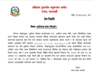 काठमाडौं,१९ मंसिर । नक्कली प्रमाणपत्रका आधारमा सार्वजनिक सेवामा प्रवेश गर्ने दुई जना विरुद्ध अख्तियार दुरुपयोग अनुसन्धान आयोगले विशेष अदालतमा मुद् ....